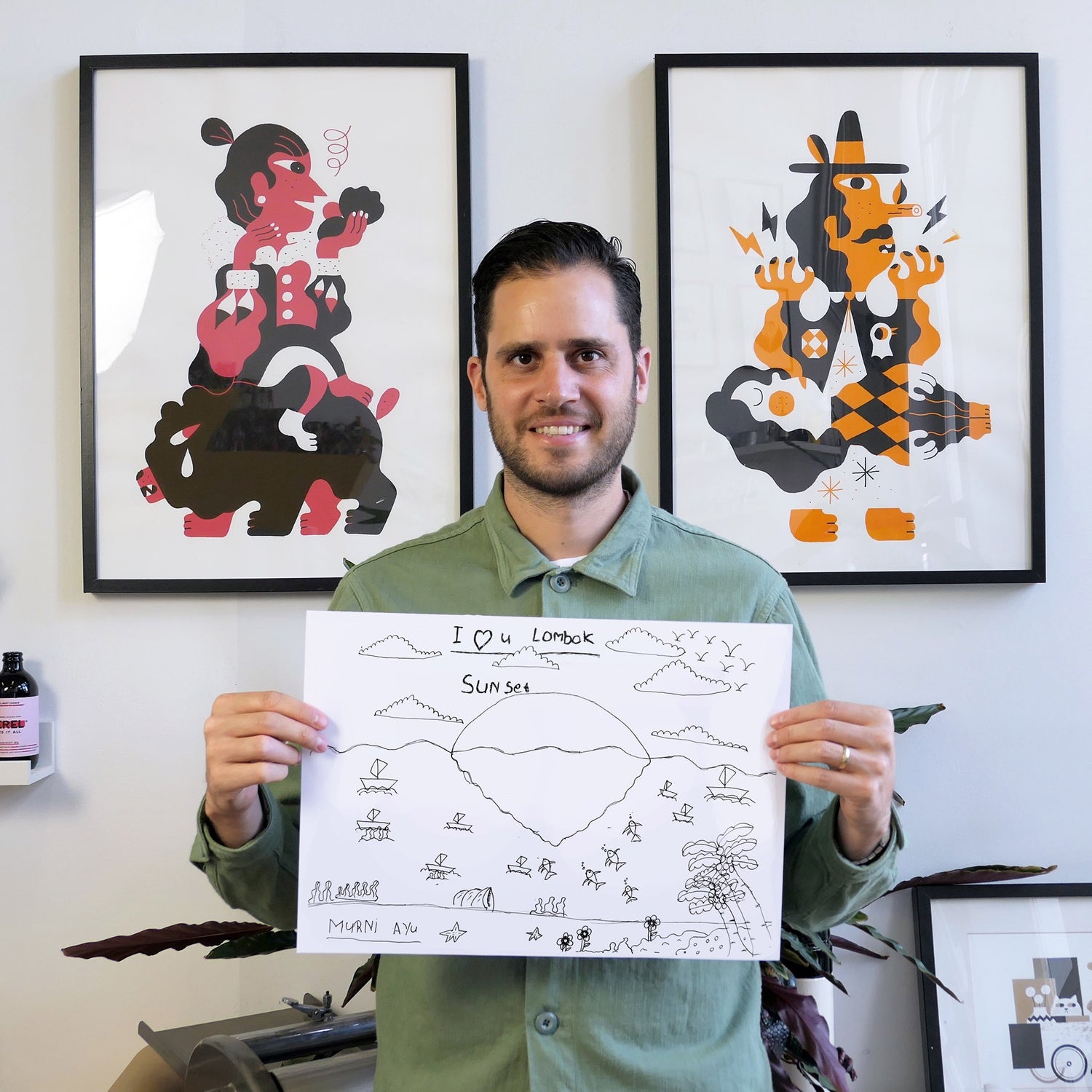 Once the drawings are all wrapped up, we ask famous artists to work their magic on our merch by using those drawings. Each month we launch an artist collaboration.