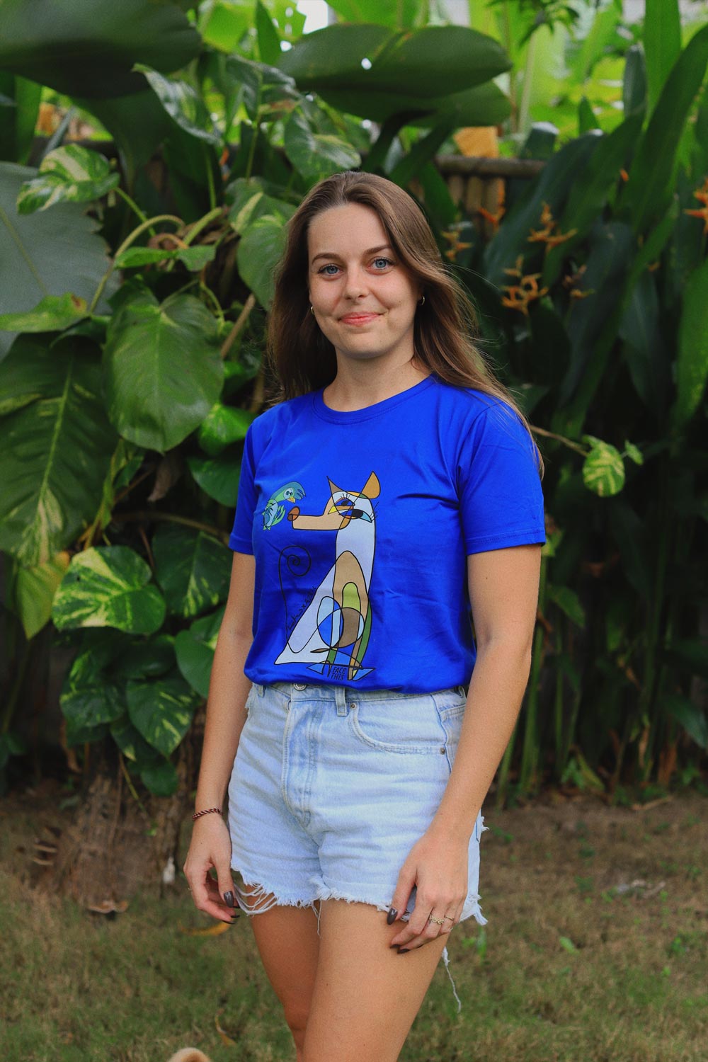 For this month’s drop, artist Belin collabed with Azril, a 11-year-old pupil from the SDN 4 Batu Putih school in Gili Asahan. Azril is surrounded by animals on the island. So, when thinking about home, he drew a cat and a bird that he often sees. All proceeds from the merch sales will go towards helping Azril's school.